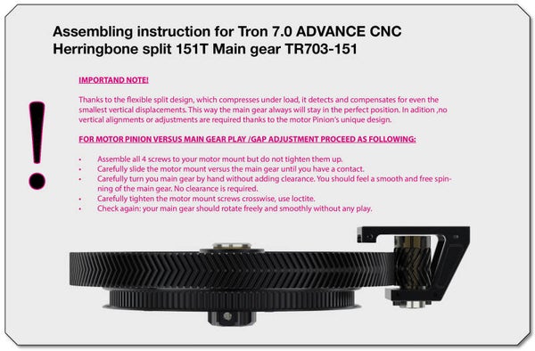 The Tron 7.0 Advance main gear is a split 151T CNC main gear.This provides some new awesome aditional features.