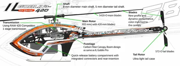 SAB ilGoblin PRO 420 White 420mm (SG426) with Main & Tail Blades - 6S High Performance 3D Heli