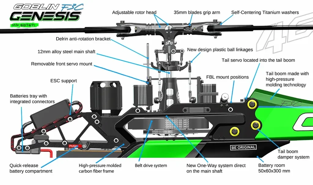 The SAB Heli Division Genesis F3C SG767 is a no-compromise helicopter designed specifically for F3C competition flying, where precision, smoothness, and consistency are everything.